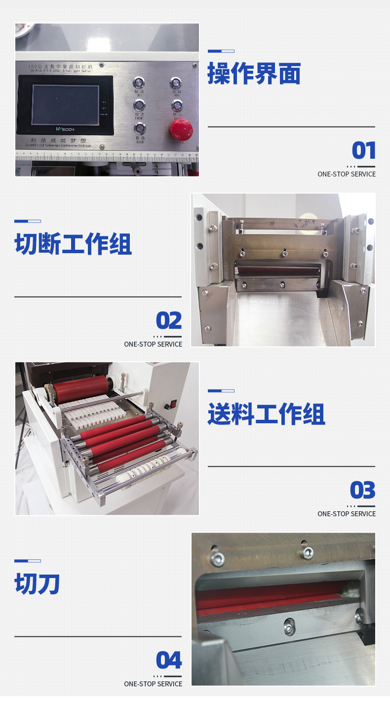 本機采用全數字智能控制裝置,按鍵操作,同時可任意設定切斷長度/數量、送料速度、且裁切精度準確、耗損少、機型設計符合人體工學原理,操作簡單,廣泛適用于電子材料行業(屏蔽材料、膠粘材料、絕緣材料、導電材料),套管加工業、線束加工業、汽摩配行業,橡塑加工業,織帶、拉鏈、電器、電機、燈具、玩具、變壓器、服裝等行業。